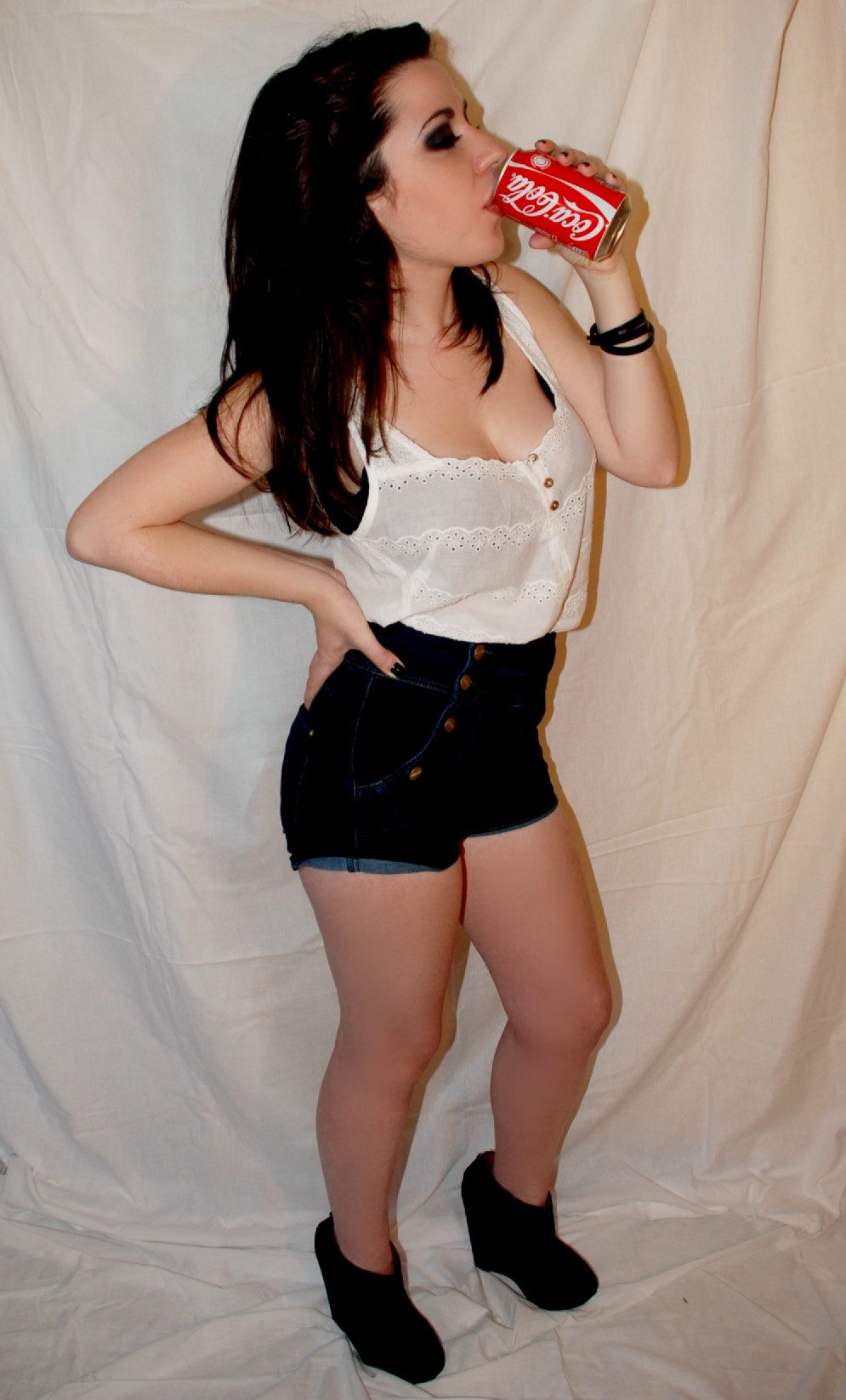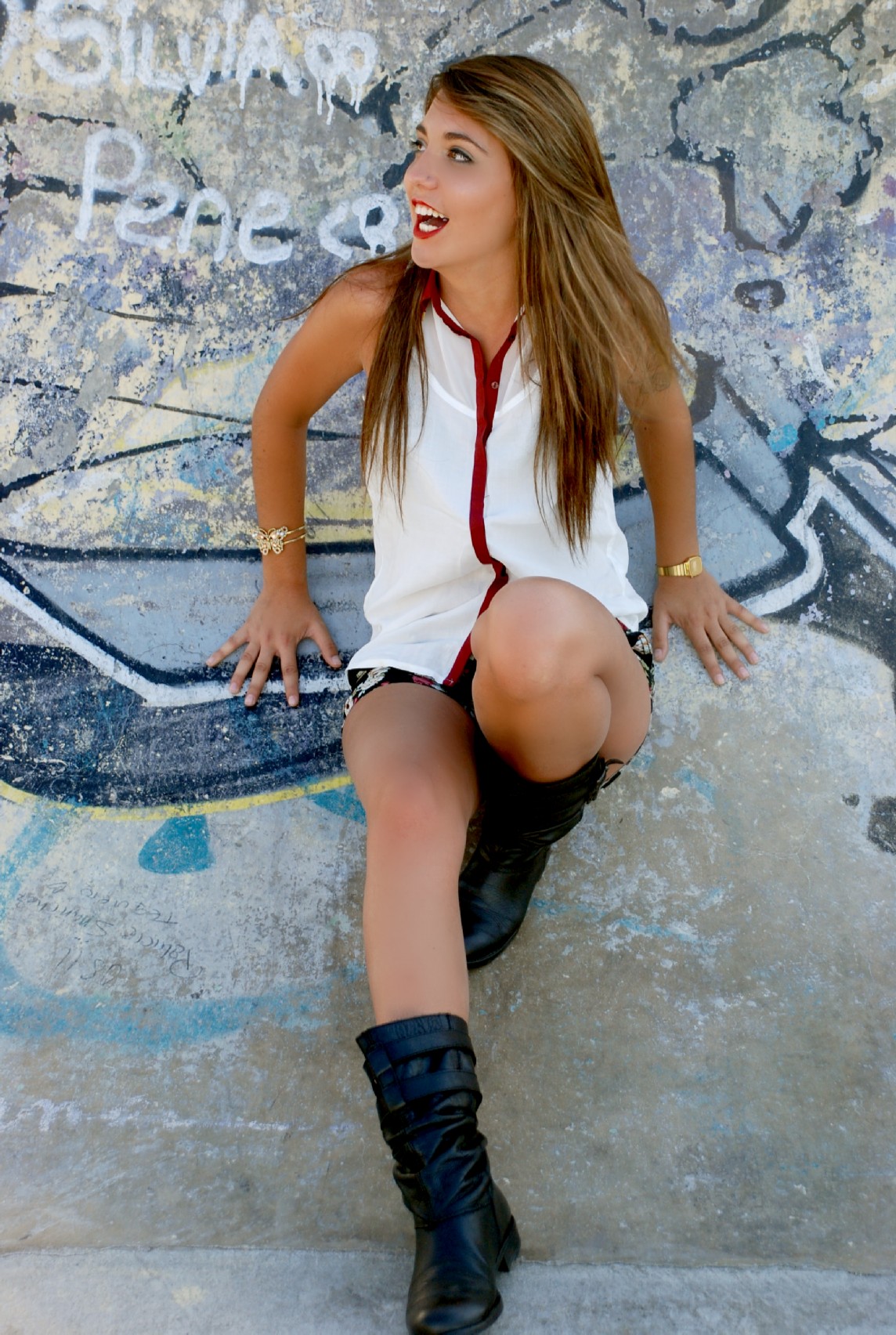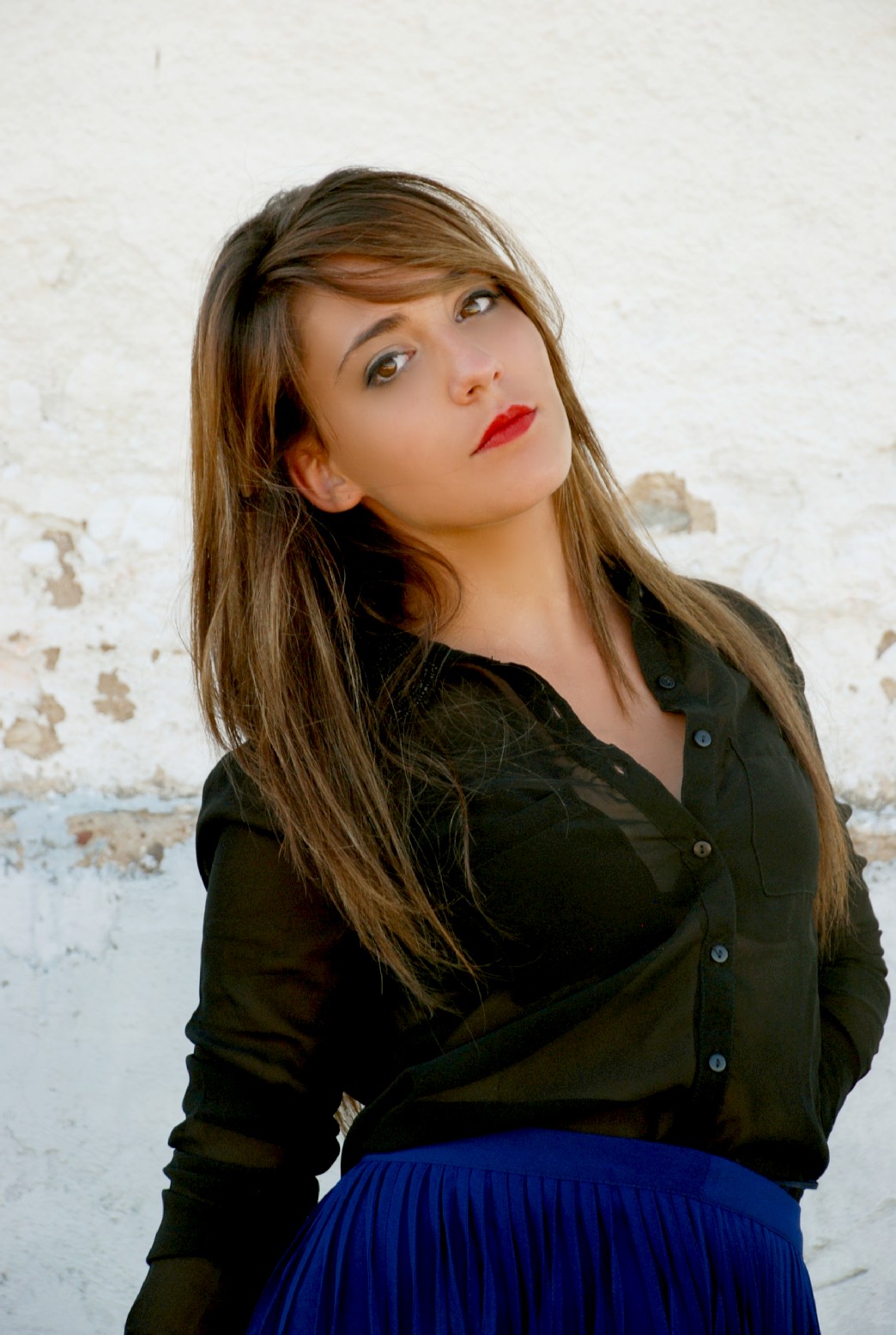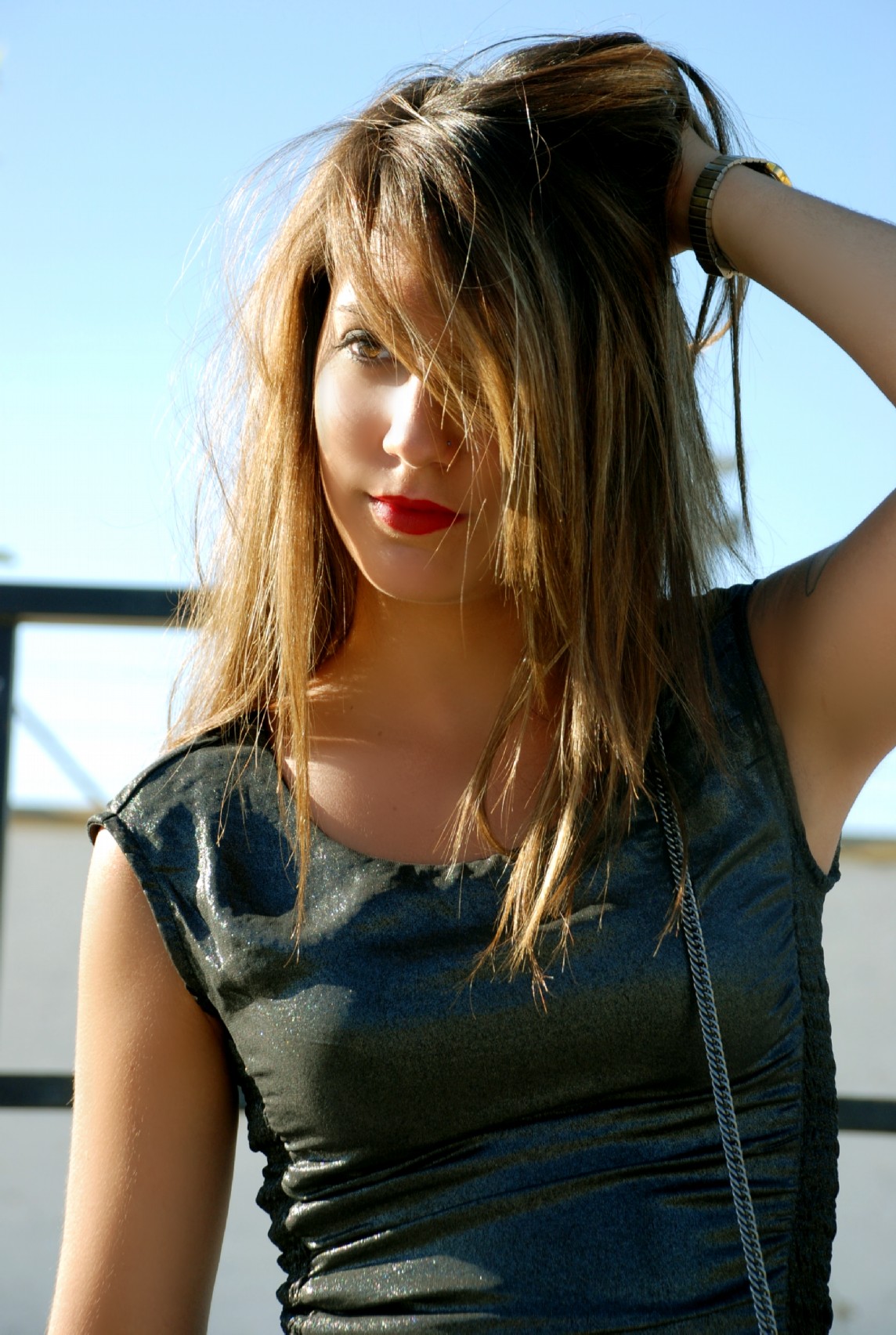 Sexi, atrevido y de sensualidad imperecedera, la modelo lleva un coordinador a base de Short de encaje fucsia de H&M (12.95€) y Camisa de gasa azul con detalle delantero de MANGO (17.99€). Complementos metálicos como el Cinturón de MANGO (15.99€) y la pulsera ennoblecen el conjunto.