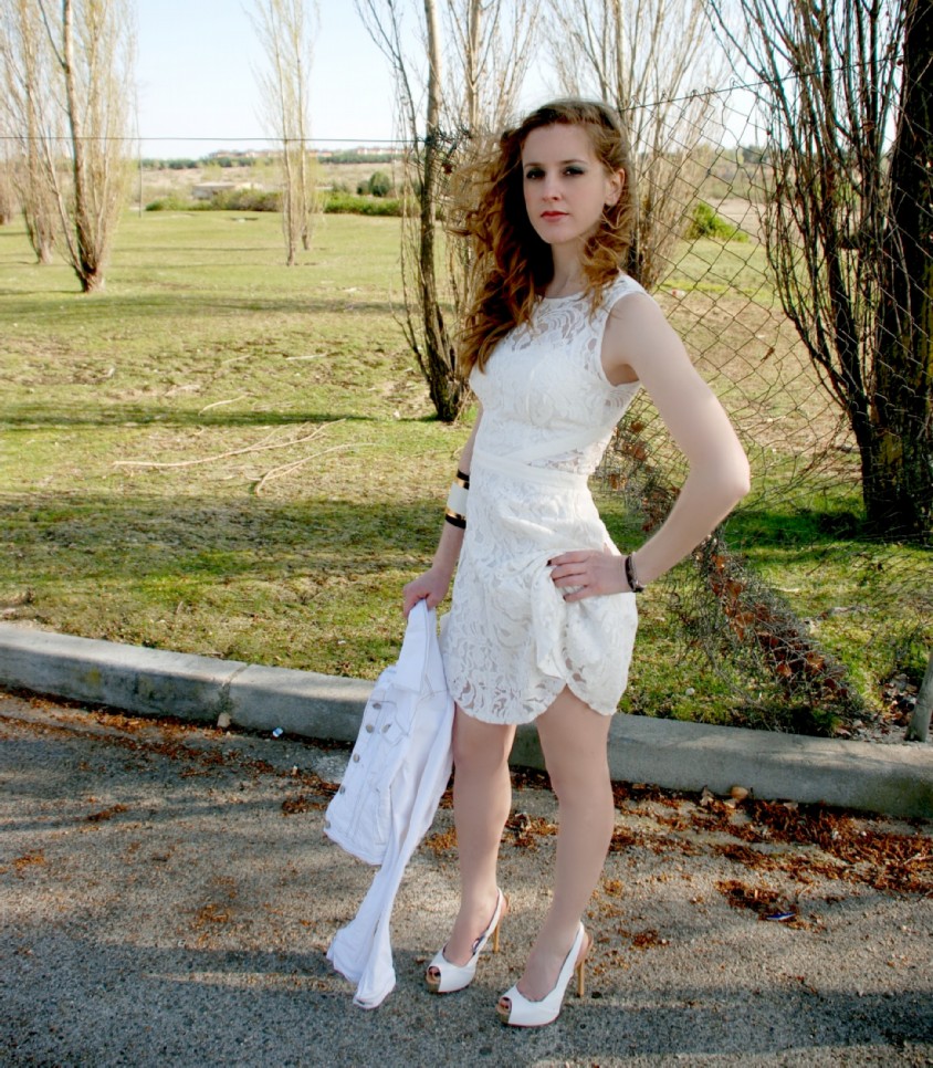 Primaveral, tierno y sensual, aparece un coordinado encuadrado en la más actual tendencia a través de un Vestido de encaje y transparencias con escote corazón de BLANCO (29.99€). Se enriquece y endurece mediante un Brazalete de superposiciones de BERSHKA (9.99€).
