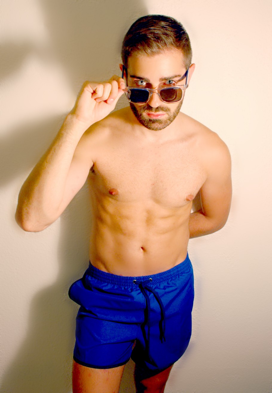 Instinto Playero por excelencia aparece un estilismo de Bañador tipo rocky (14.99€) y Gafas transparentes con detalles en color añil, ambos de PULL&BEAR.